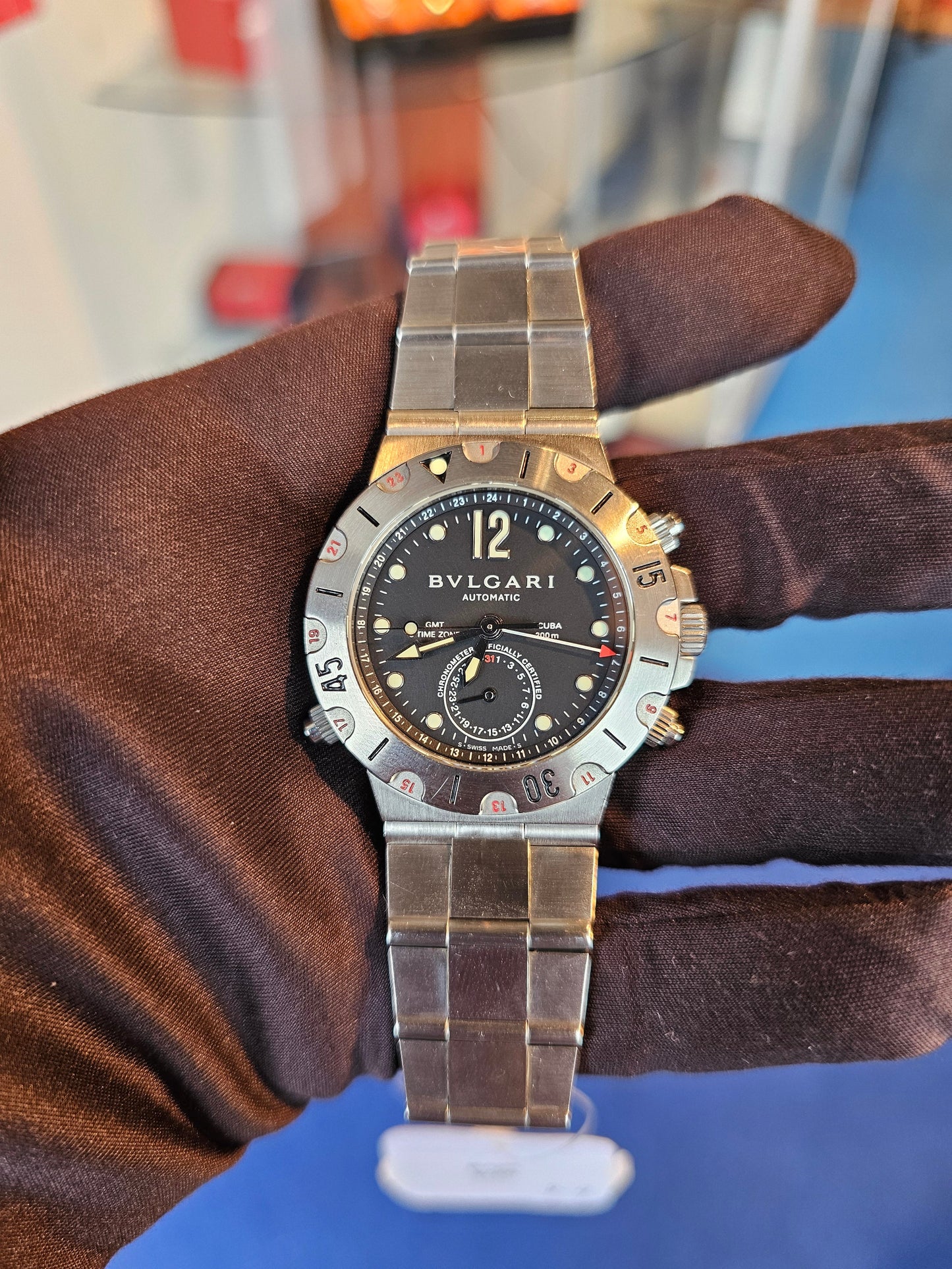 Experience Italian luxury and Swiss precision with this Bulgari Diagono SD38SGMT.