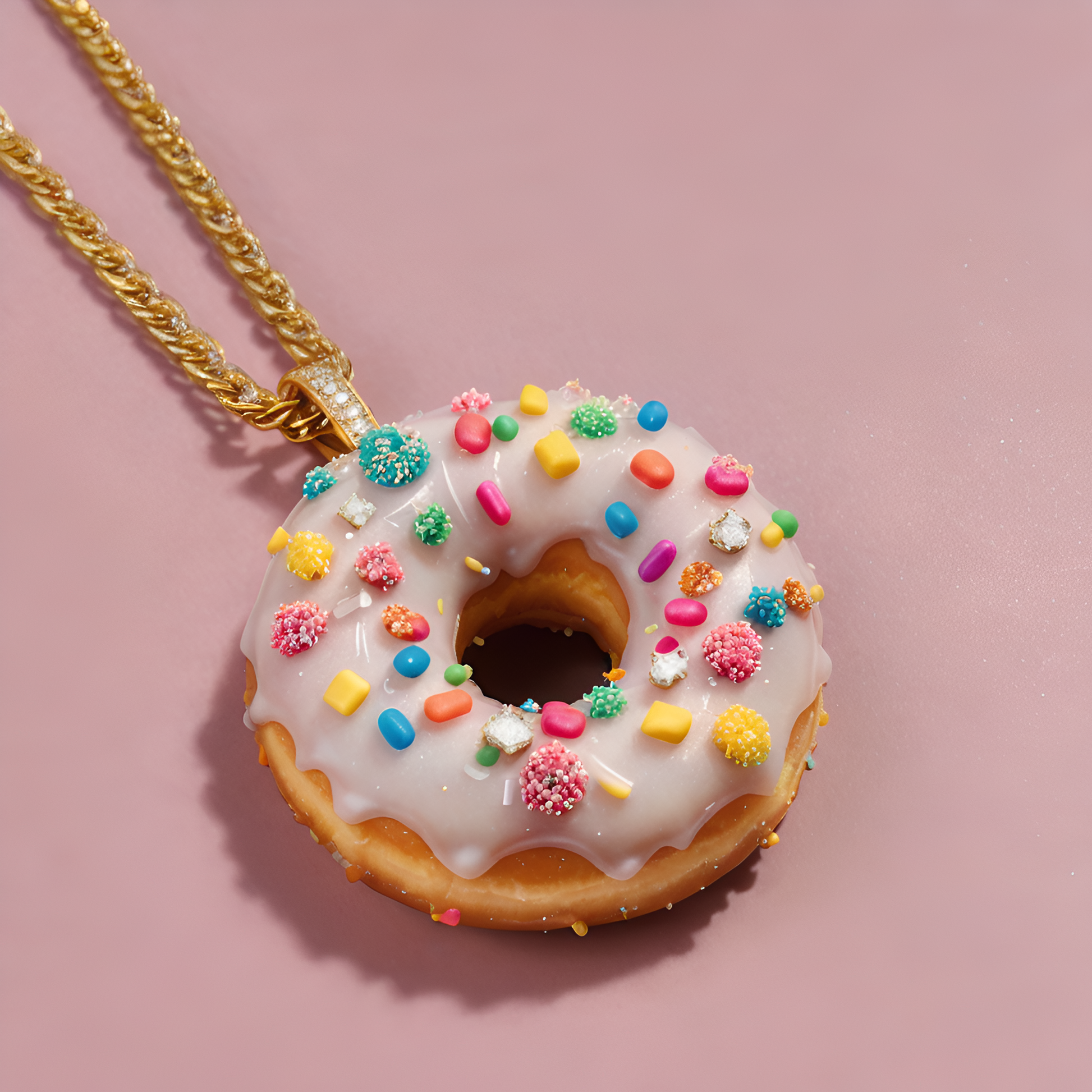 Sprinkled frosted donut chain necklace